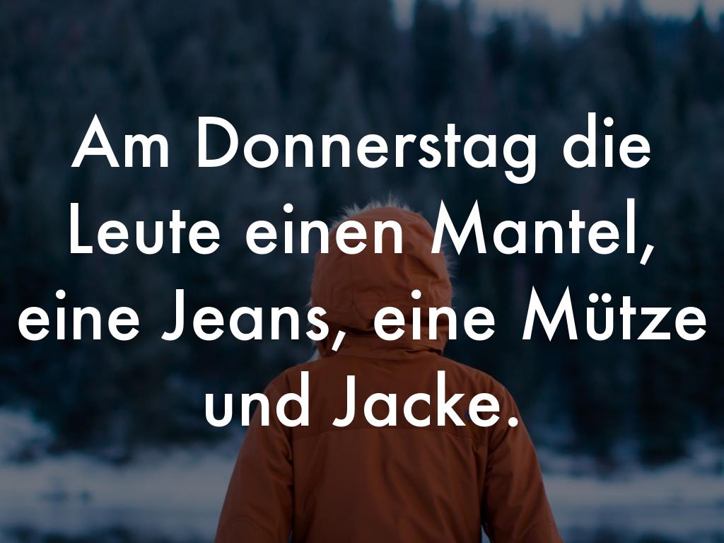 Am Donnerstag die Leute einen Mantel, eine Jeans, eine Mütze und Jacke.