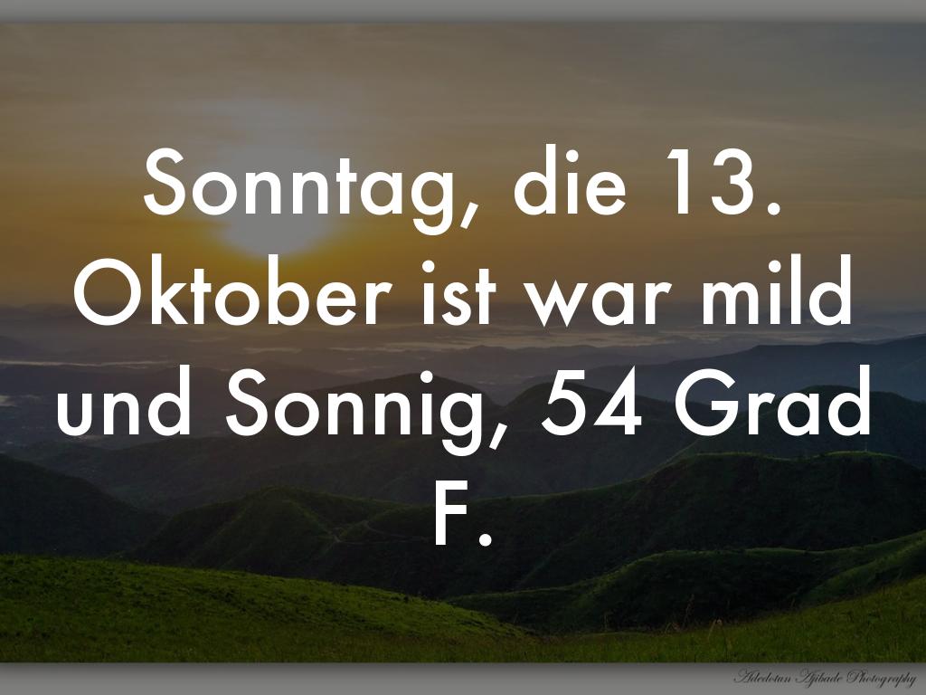 Sonntag, die 13. Oktober ist war mild und Sonnig, 54 Grad F.