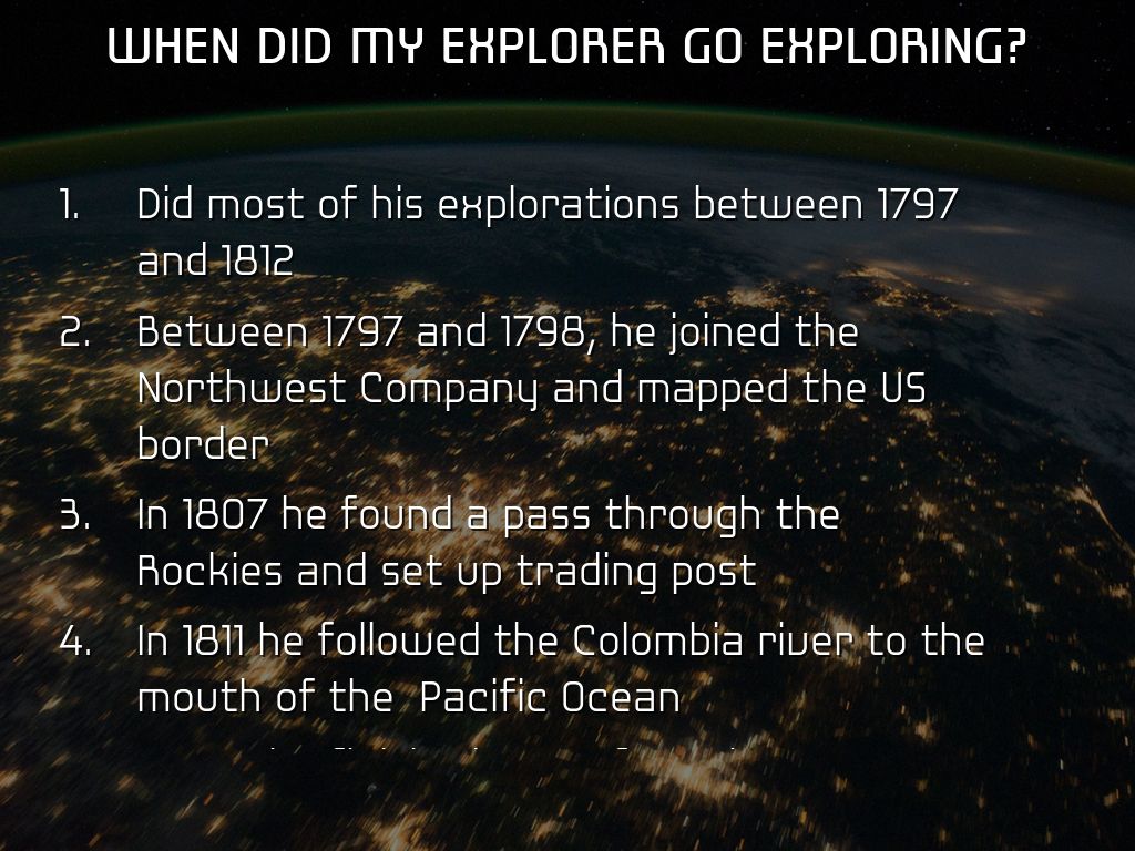 WHERE DID MY EXPLORER DO HIS EXPLORATIONS?