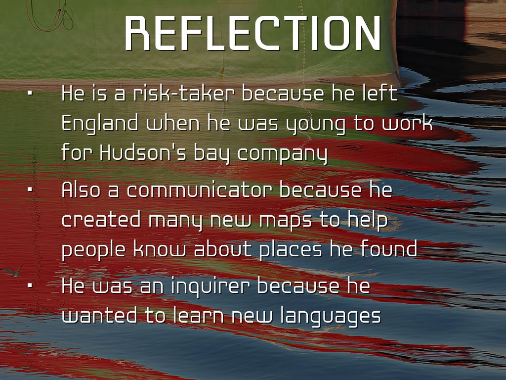 He is a risk-taker because he left England when he was young to work for Hudson's bay company