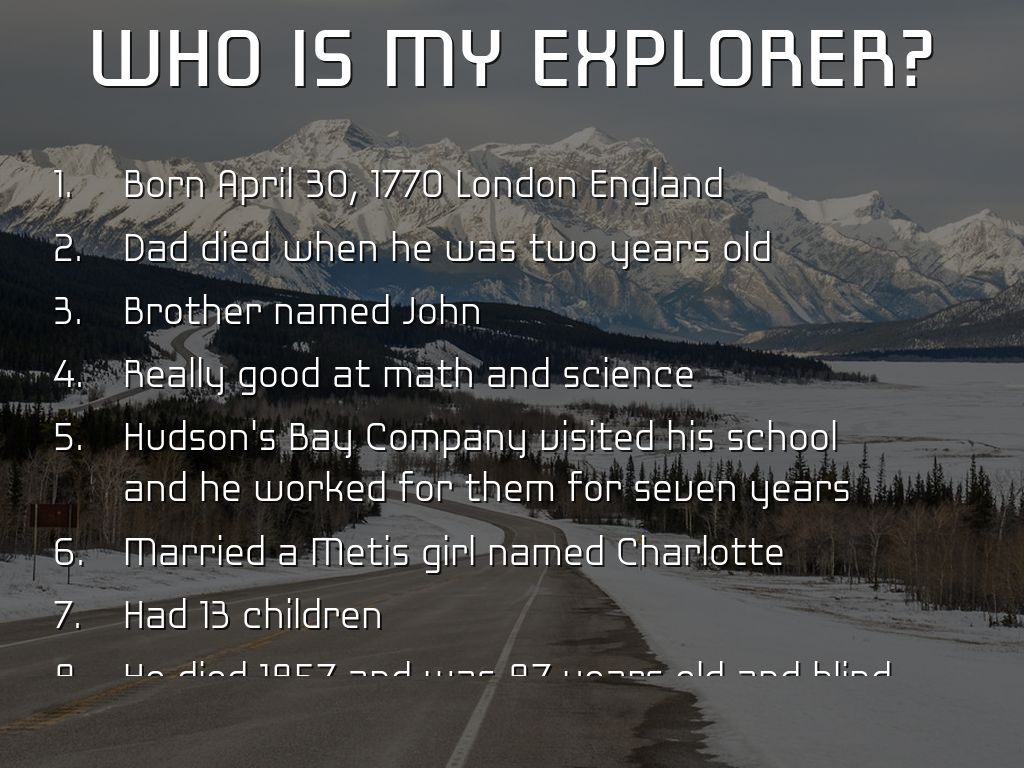 He was a surveyor and mapped an area of 3.9 million km from Hudson Bay to Pacific Ocean