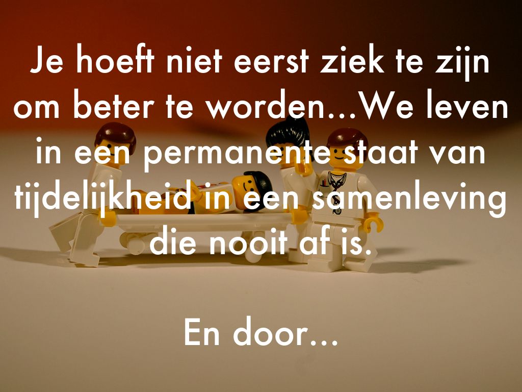 Je hoeft niet eerst ziek te zijn om beter te worden...We leven in een permanente staat van tijdelijkheid in een samenleving die nooit af is.