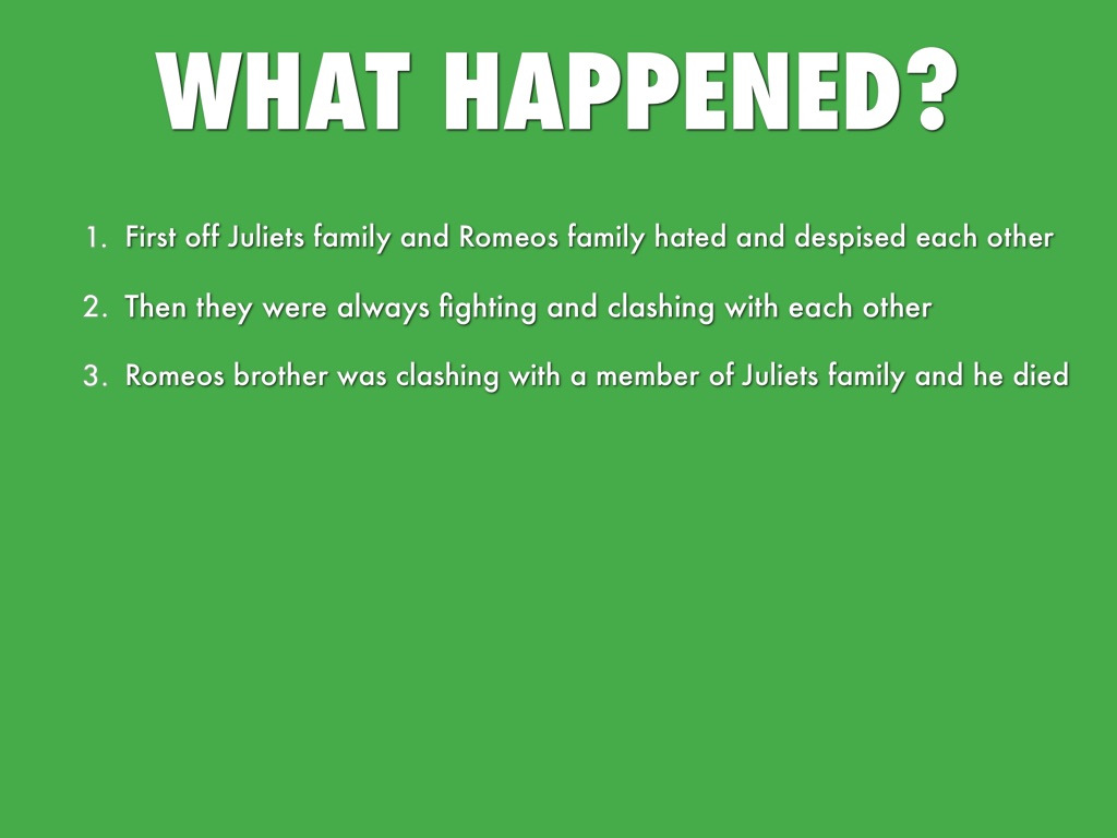 First off Juliets family and Romeos family hated and despised each other
