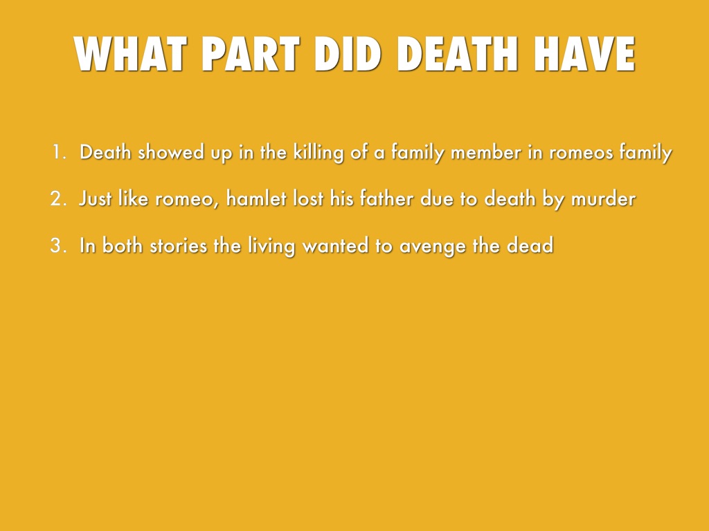Just like romeo, hamlet lost his father due to death by murder