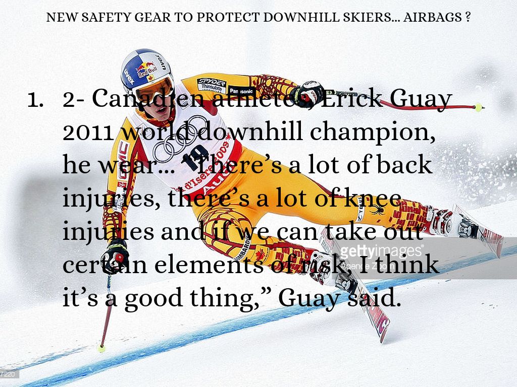 2- Canadien athletes, Erick Guay 2011 world downhill champion, he wear... “There’s a lot of back injuries, there’s a lot of knee injuries and if we can take out certain elements of risk, I think it’s a good thing,” Guay said.