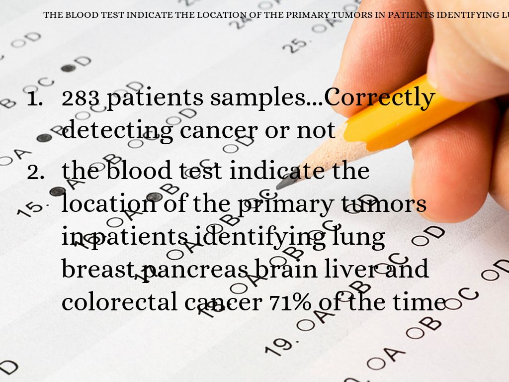 the blood test indicate the location of the primary tumors in patients identifying lung breast pancreas brain liver and colorectal cancer 71% of the time