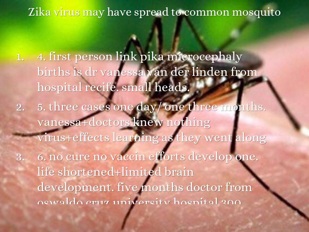 6. no cure no vaccin efforts develop one. life shortened+limited brain development. five months doctor from oswaldo cruz university hospital 300 microcephalycases