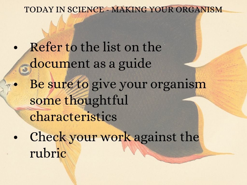 TODAY IN SCIENCE - MAKING YOUR ORGANISM