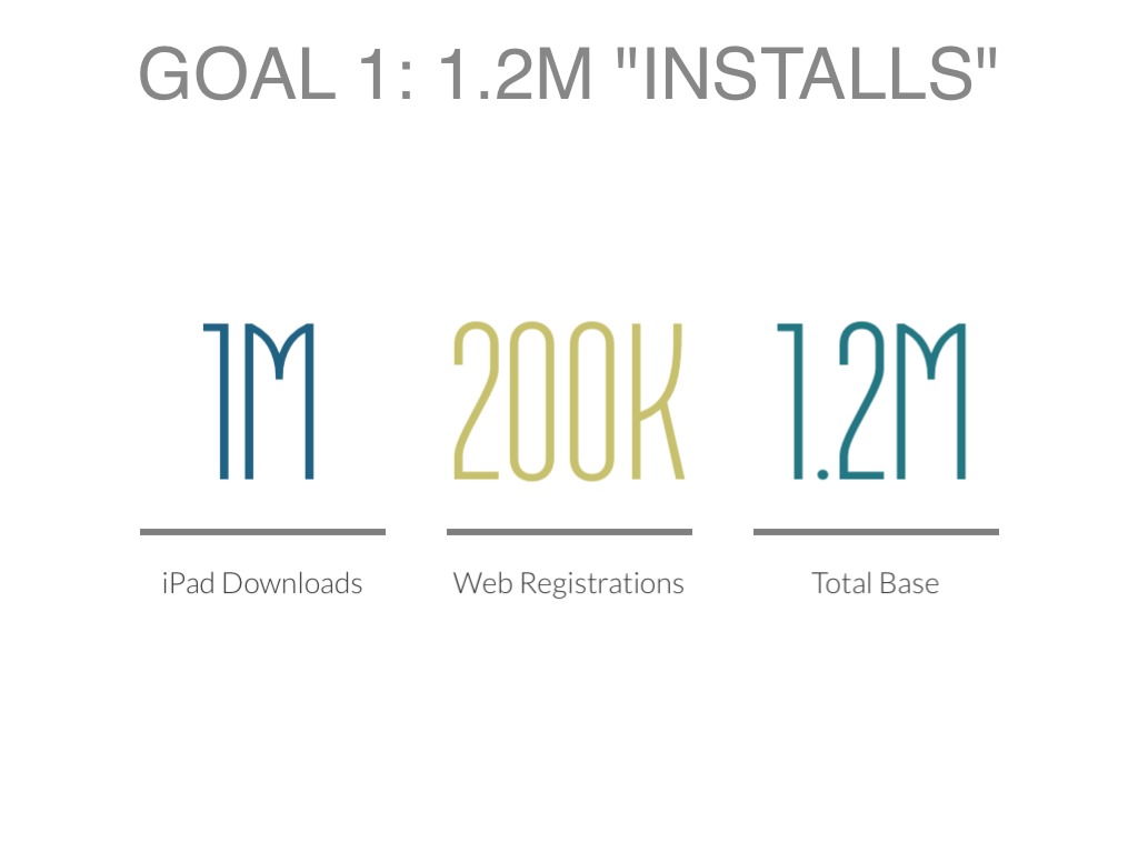 Our projections on this goal were based on an earlier web launch as well as a more significant iPad PR event (as well as 1 or 2 more app store features than we have received). Given the changes we had to make in our plans, we're pretty happy with the steady progress we've made toward 1M downloads.