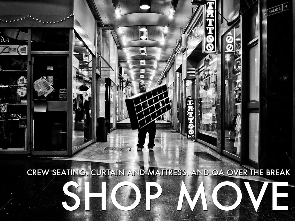 CREW SEATING, CURTAIN AND MATTRESS, AND QA OVER THE BREAK