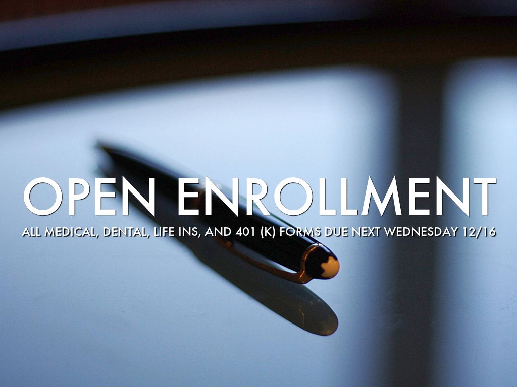 ALL MEDICAL, DENTAL, LIFE INS, AND 401 (K) FORMS DUE NEXT WEDNESDAY 12/16