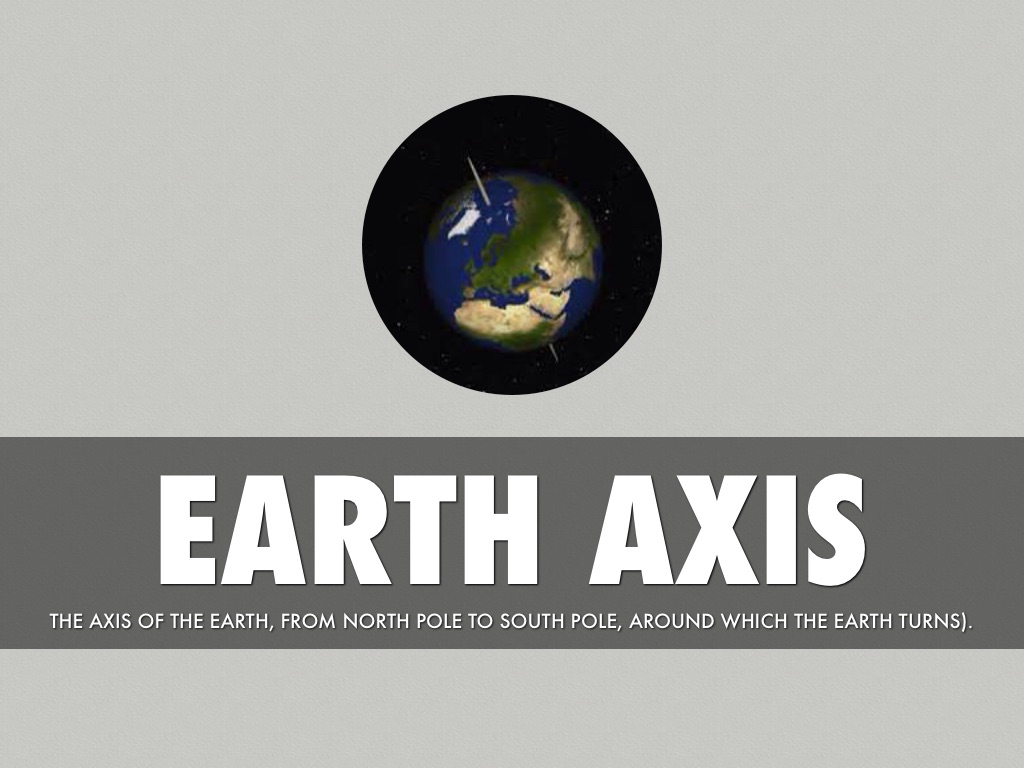 THE AXIS OF THE EARTH, FROM NORTH POLE TO SOUTH POLE, AROUND WHICH THE EARTH TURNS).