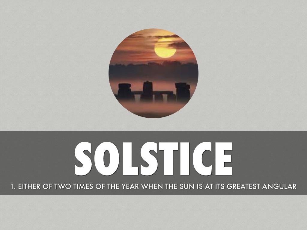 1. EITHER OF TWO TIMES OF THE YEAR WHEN THE SUN IS AT ITS GREATEST ANGULAR