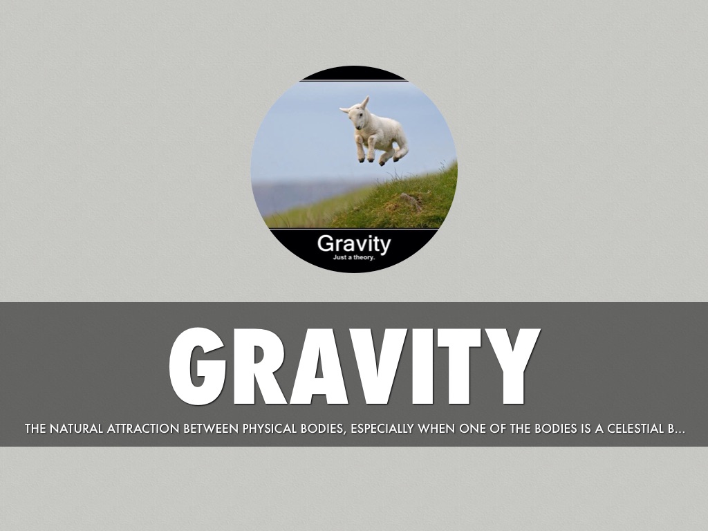 THE NATURAL ATTRACTION BETWEEN PHYSICAL BODIES, ESPECIALLY WHEN ONE OF THE BODIES IS A CELESTIAL BODY, SUCH AS THE EARTH