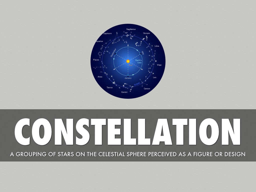 A GROUPING OF STARS ON THE CELESTIAL SPHERE PERCEIVED AS A FIGURE OR DESIGN