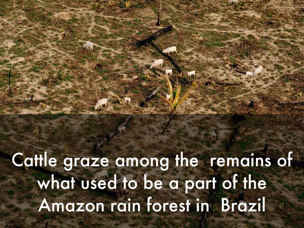Cattle graze among the remains of what used to be a part of the Amazon rain forest in Brazil