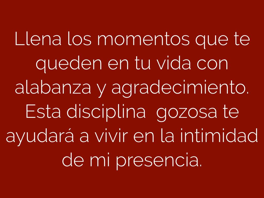 Llena los momentos que te queden en tu vida con alabanza y agradecimiento.
