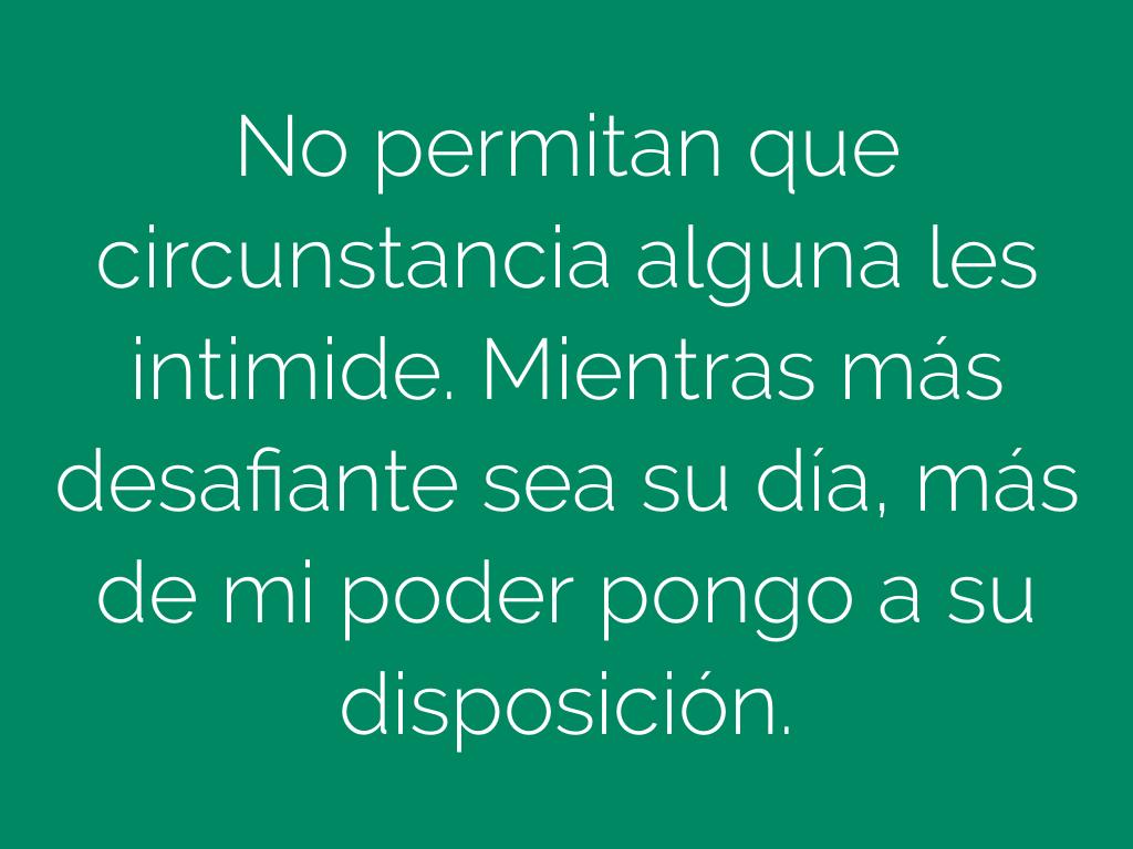No permitan que circunstancia alguna les intimide. Mientras más desafiante sea su día, más de mi poder pongo a su disposición.