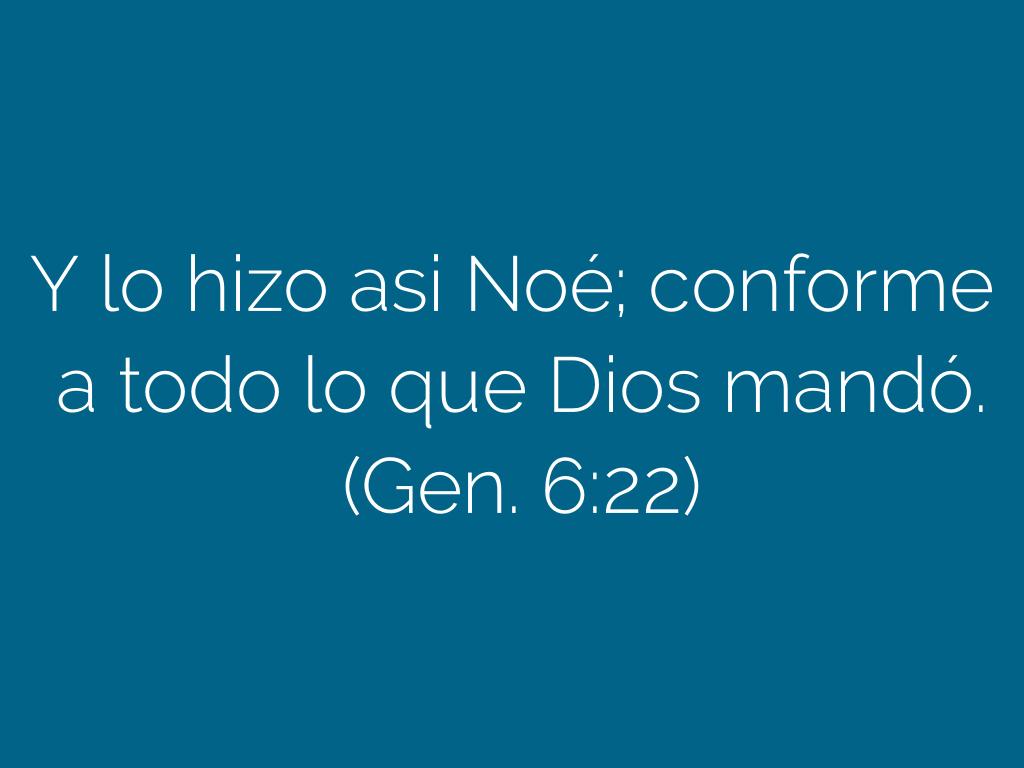 Y lo hizo asi Noé; conforme a todo lo que Dios mandó. (Gen. 6:22)