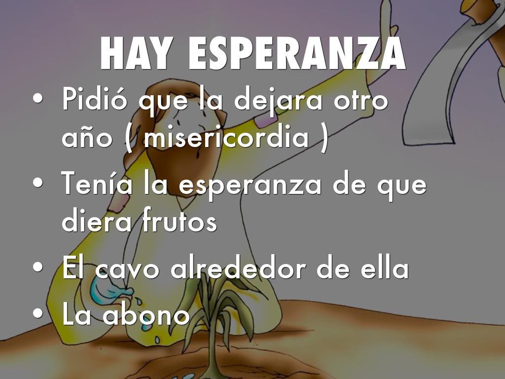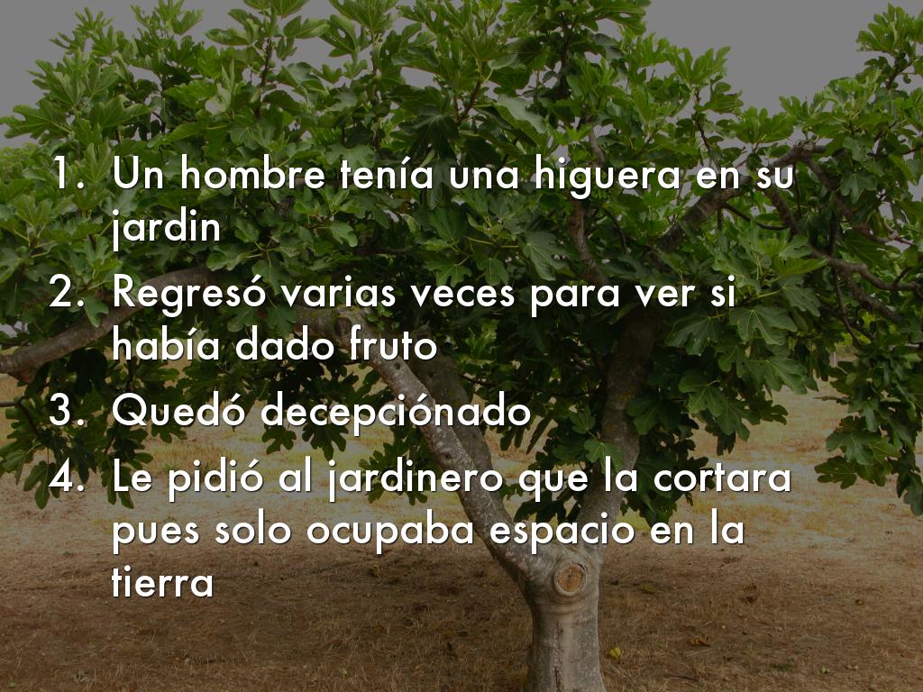 Lucas 13:6;9 : Luego jesus les contó la siguiente historia: Un hombre plantó una higuera en su jardín ,y regresó varias veces para ver si había dado algún fruto, pero siempre quedaba decepcionado.v7- finalmente le dijo al jardinero: llevo tres años esperando ¡ y no ha producido ni un solo higo! Córtala ,solo ocupa espacio en mi jardín v8- el entonces dijo, señor déjala todavía este año, hasta que yo cave alrededor de ella y la abone. V9- y si diere fruto bien, si no ,entonces puedes cortarla.