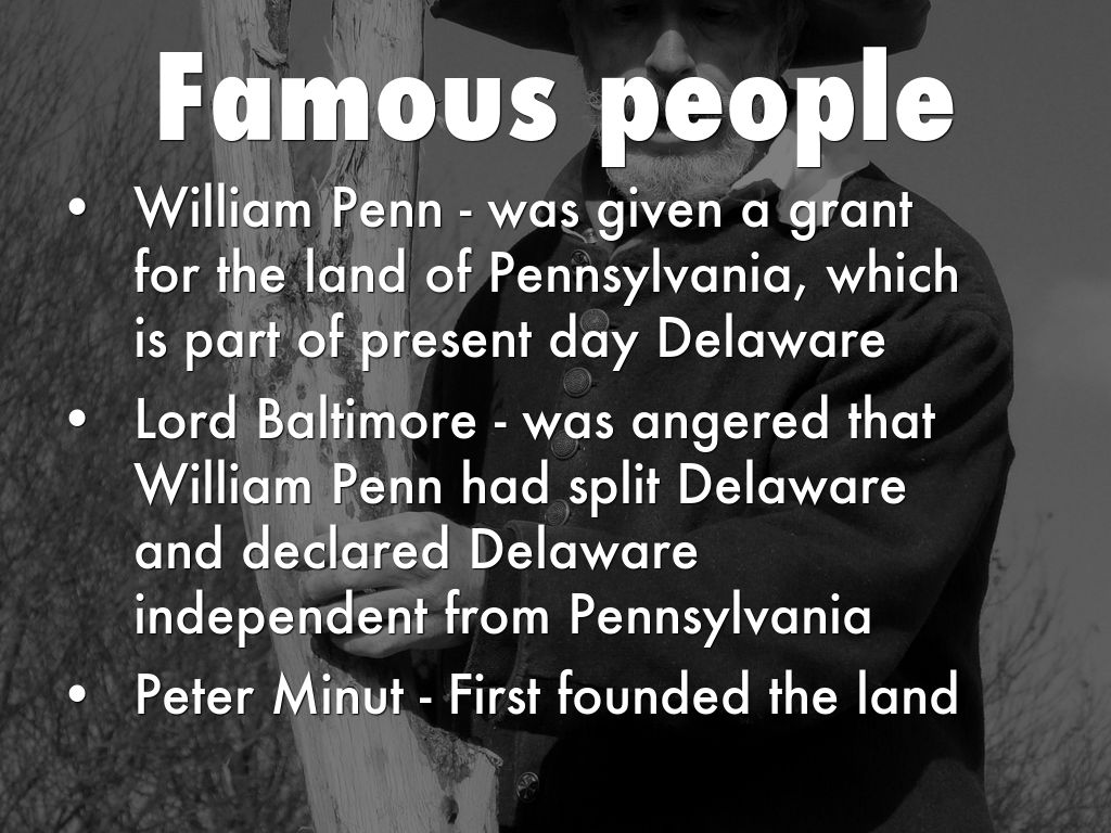 • William Penn - was given a grant for the land of Pennsylvania, which is part of present day Delaware