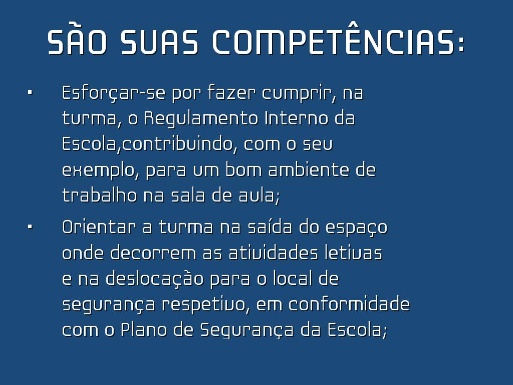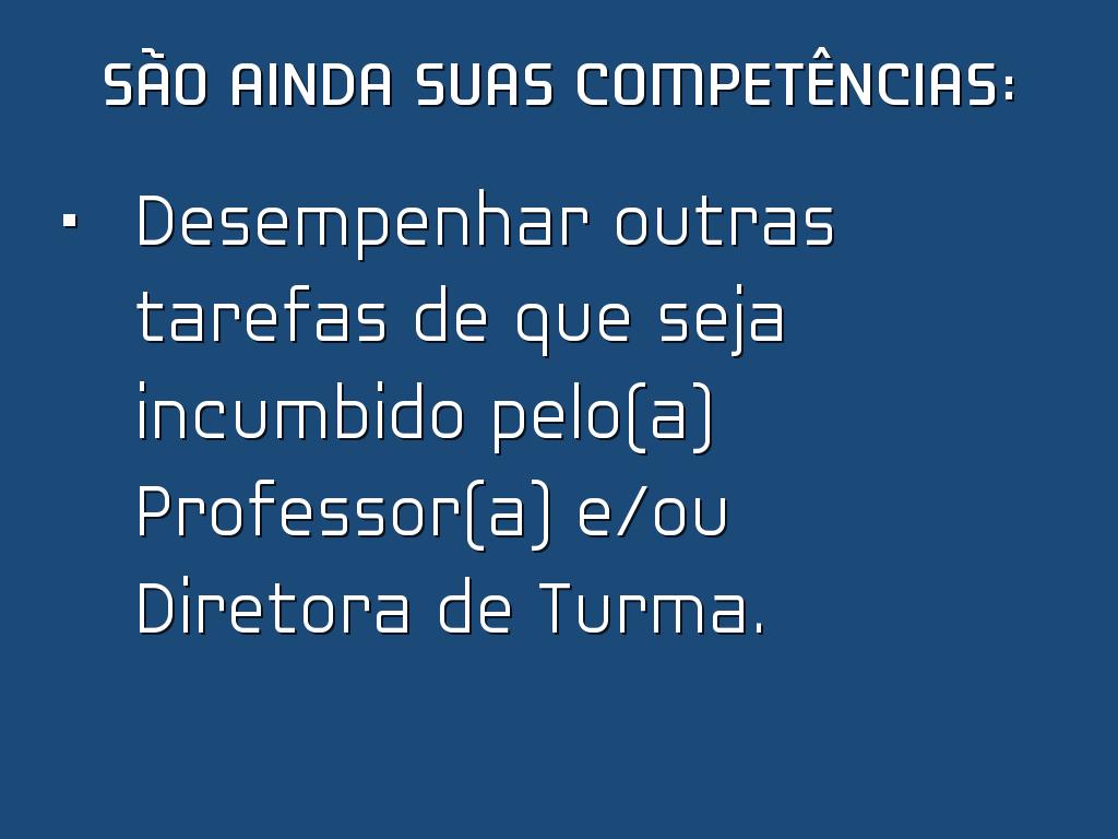 - Substituir o delegado de turma, sempre que se verifique o impedimento deste.