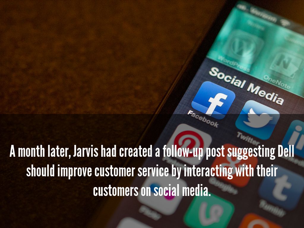 A month later, Jarvis had created a follow-up post suggesting Dell should improve customer service by interacting with their customers on social media.
