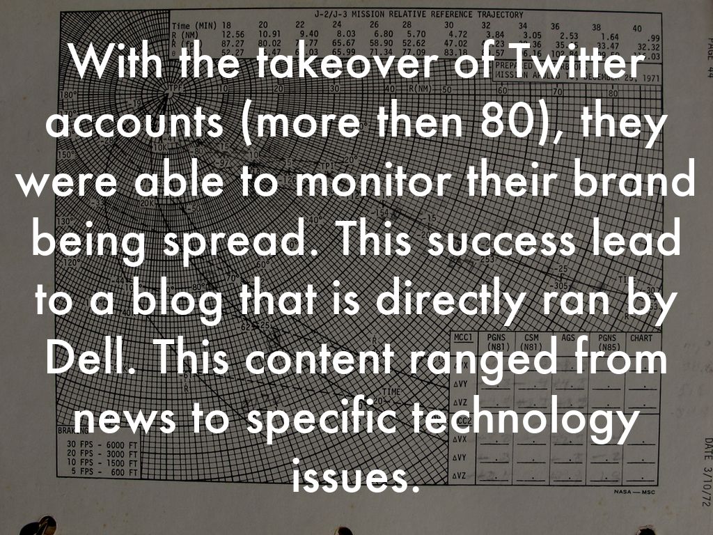 With the takeover of Twitter accounts (more then 80), they were able to monitor their brand being spread. This success lead to a blog that is directly ran by Dell. This content ranged from news to specific technology issues.