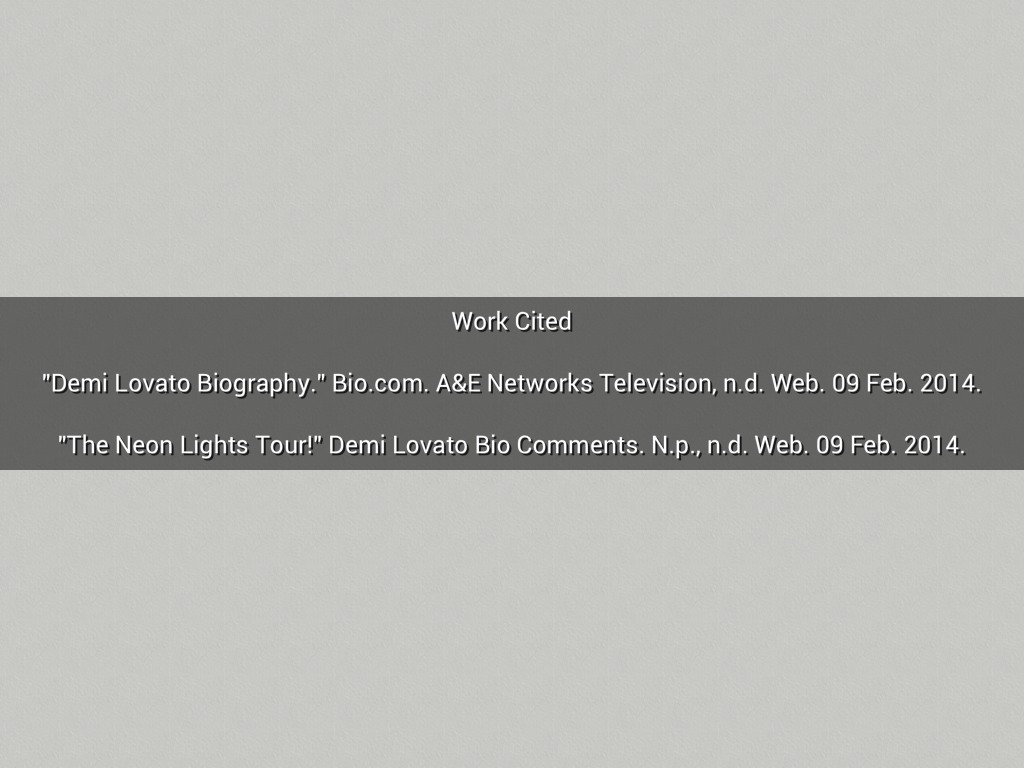 "The Neon Lights Tour!" Demi Lovato Bio Comments. N.p., n.d. Web. 09 Feb. 2014.