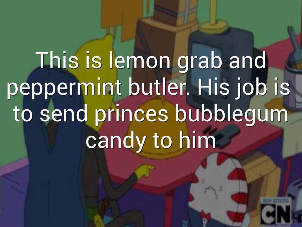 This is lemon grab and peppermint butler. His job is to send princes bubblegum candy to him