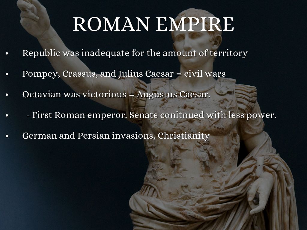 • Pompey, Crassus, and Julius Caesar = civil wars