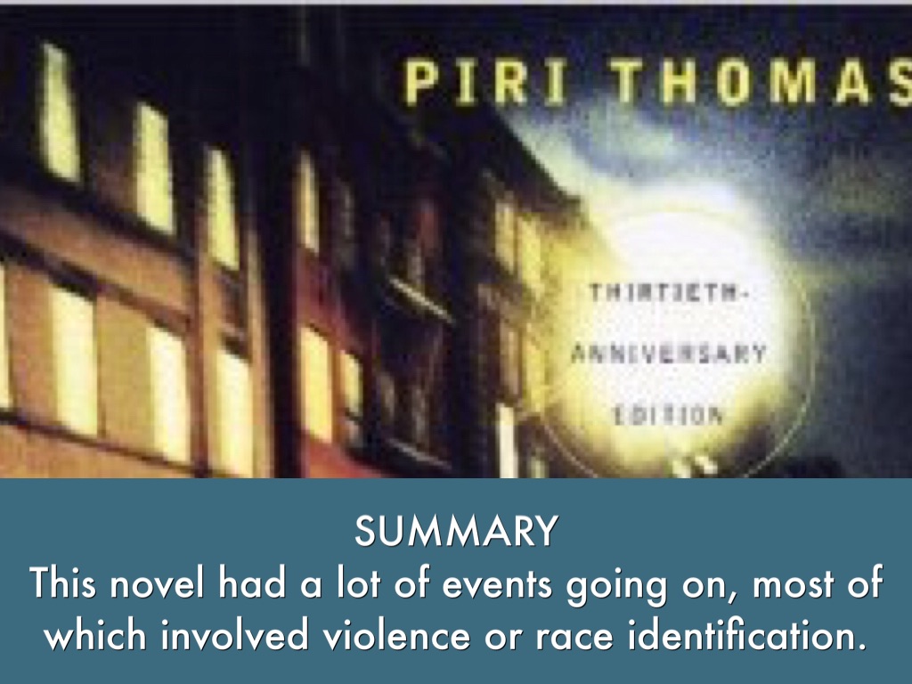 Piri Thomas is a writer who grew up in an impoverished Puerto Rican family. He used the struggles and violence he experienced and interpreted them into his novel, "Down These Mean Streets".
