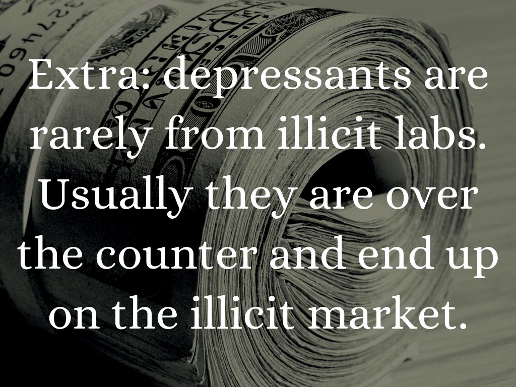 Extra: depressants are rarely from illicit labs. Usually they are over the counter and end up on the illicit market.
