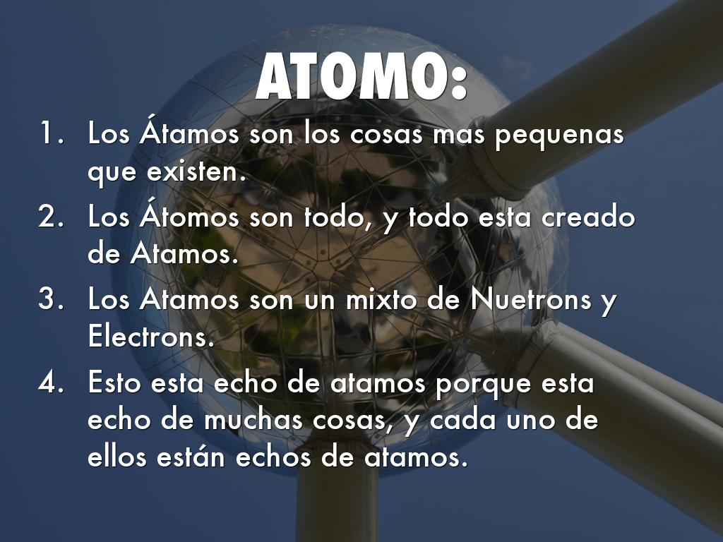 Esto esta echo de atamos porque esta echo de muchas cosas, y cada uno de ellos están echos de atamos.