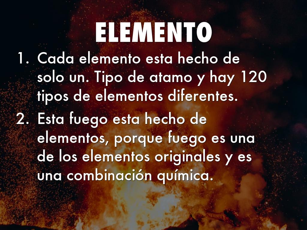 Esta fuego esta hecho de elementos, porque fuego es una de los elementos originales y es una combinación química.