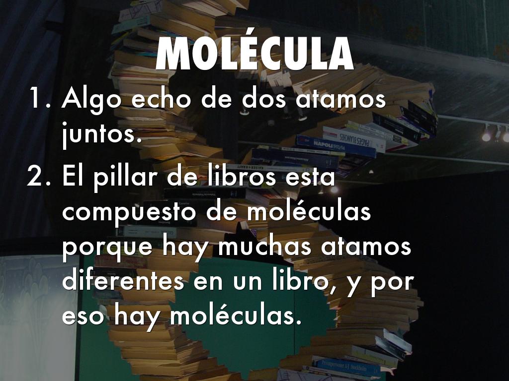 El pillar de libros esta compuesto de moléculas porque hay muchas atamos diferentes en un libro, y por eso hay moléculas.