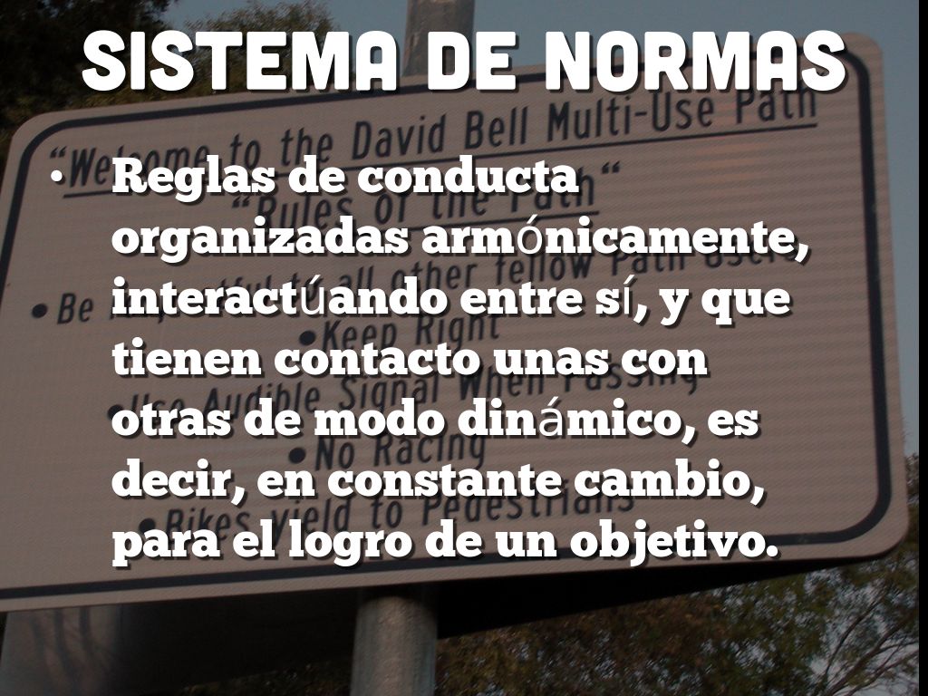 Reglas de conducta organizadas armónicamente, interactúando entre sí, y que tienen contacto unas con otras de modo dinámico, es decir, en constante cambio, para el logro de un objetivo.