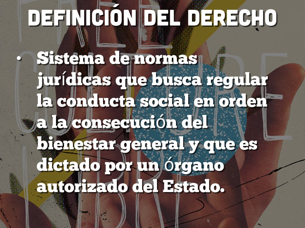 Sistema de normas jurídicas que busca regular la conducta social en orden a la consecución del bienestar general y que es dictado por un órgano autorizado del Estado.