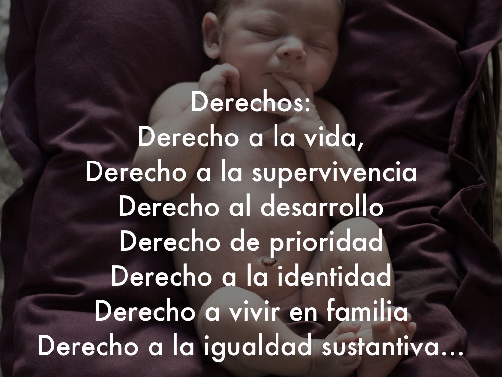 Derechos: Derecho a la vida, Derecho a la supervivencia Derecho al desarrollo Derecho de prioridad Derecho a la identidad Derecho a vivir en familia Derecho a la igualdad sustantiva…