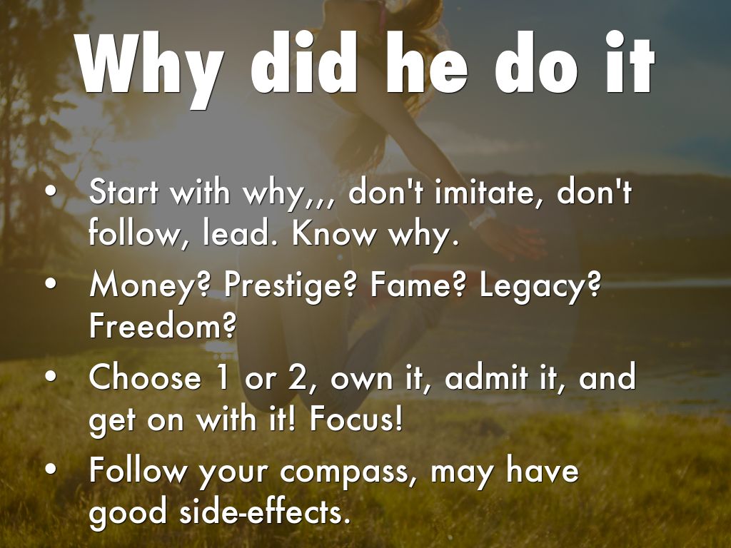 Start with why,,, don't imitate, don't follow, lead. Know why.