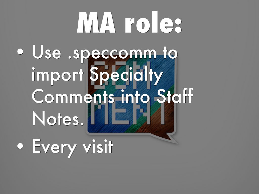 Use .speccomm to import Specialty Comments into Staff Notes.