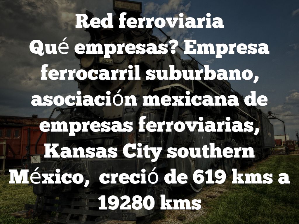 Red ferroviaria Qué empresas? Empresa ferrocarril suburbano, asociación mexicana de empresas ferroviarias, Kansas City southern México, creció de 619 kms a 19280 kms