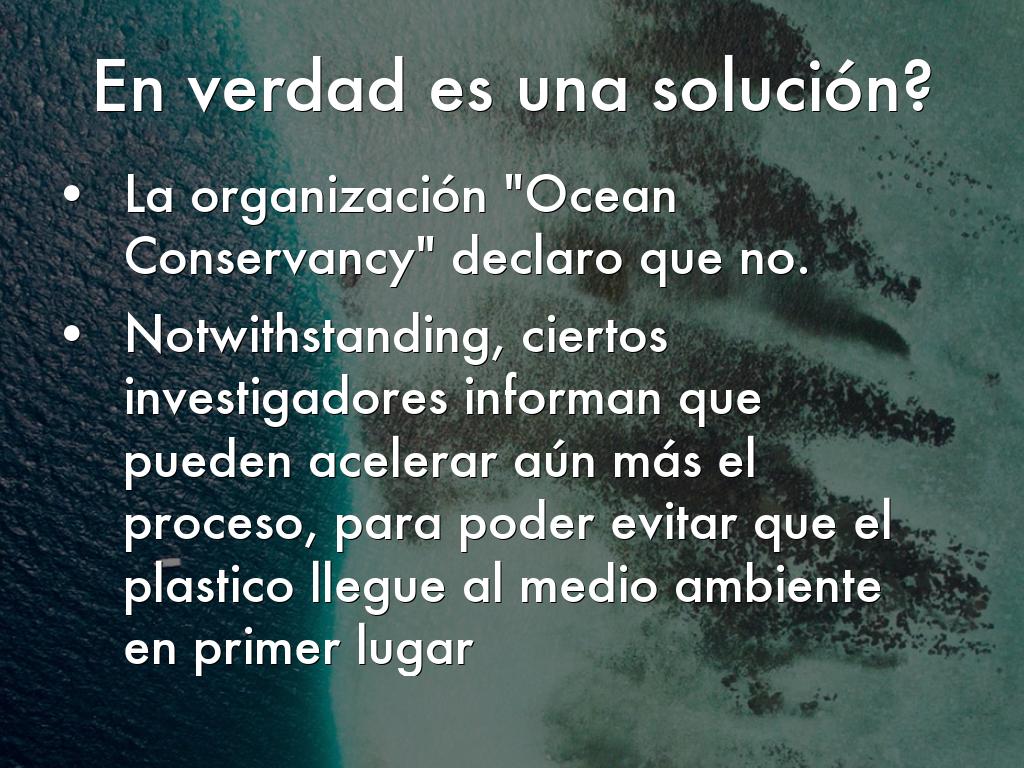 Notwithstanding, ciertos investigadores informan que pueden acelerar aún más el proceso, para poder evitar que el plastico llegue al medio ambiente en primer lugar