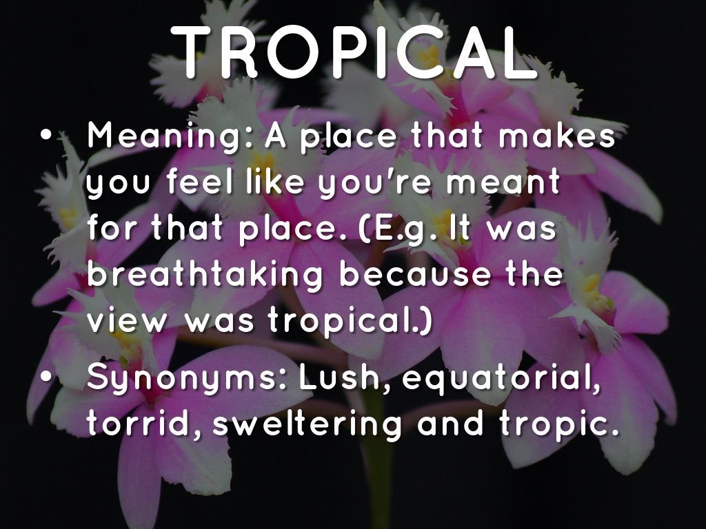 • Synonyms: Lush, equatorial, torrid, sweltering and tropic.