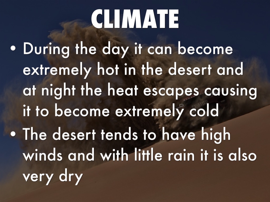 During the day it can become extremely hot in the desert and at night the heat escapes causing it to become extremely cold