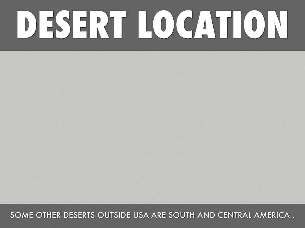 SOME OTHER DESERTS OUTSIDE USA ARE SOUTH AND CENTRAL AMERICA .