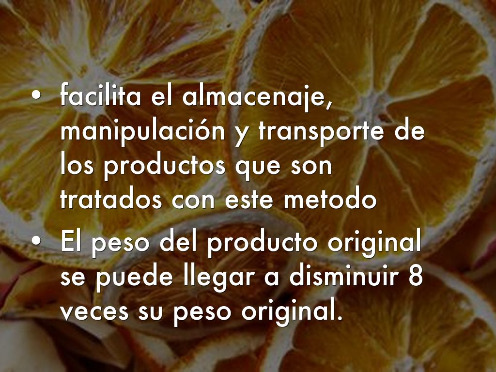 facilita el almacenaje, manipulación y transporte de los productos que son tratados con este metodo