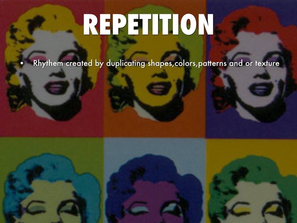 Rhythem created by duplicating shapes,colors,patterns and or texture