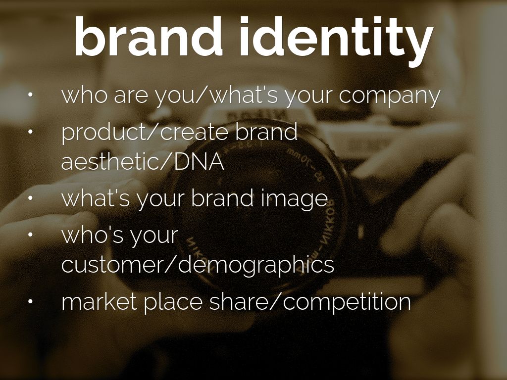establish 'brand' identifiable product base/recognizable item/finish/detail