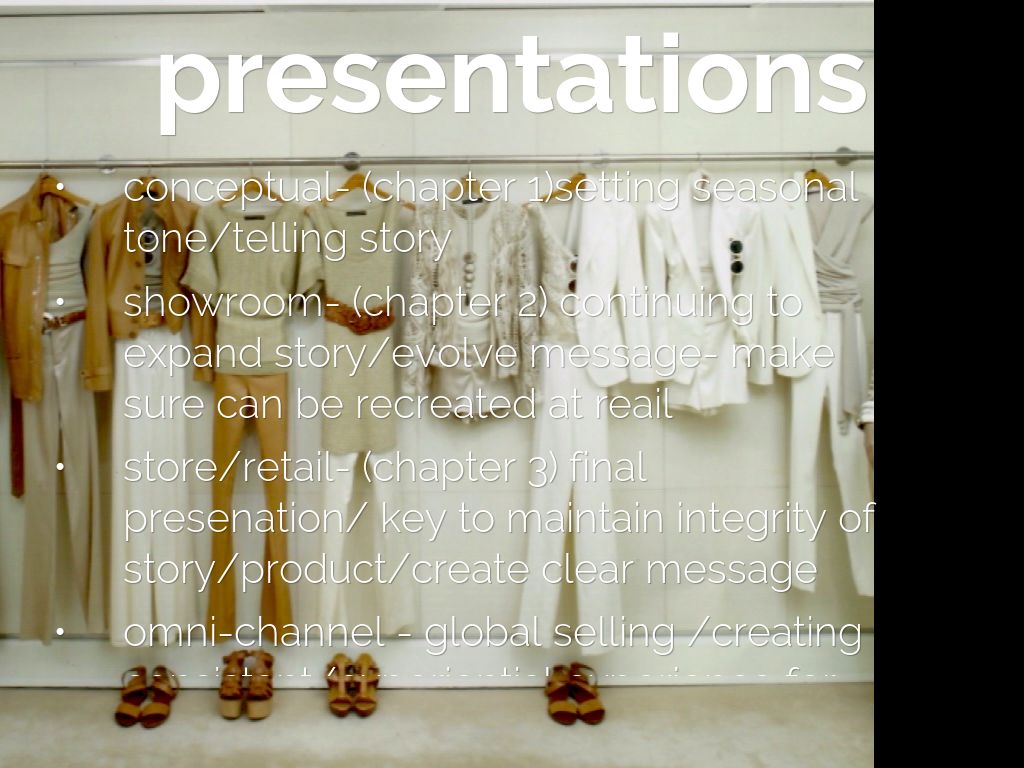 store/retail- (chapter 3) final presenation/ key to maintain integrity of story/product/create clear message
